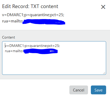 | * DNS설정에서 name에는 mail._domainkey.example.com, value에는 txt파일의 "v=DKIM1; h=sha256; k=rsa; s=email; p=DAWdajdka02i24................" 사이의 값을 넣는다. p값이 길어 ""로 분리되었으면 ""를 제거하고 문자열을 다 붙여서 하나의 TXT로 넣는다.. |